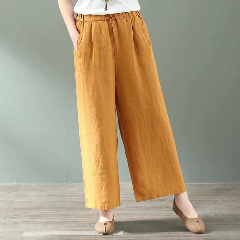 تصدير التجارة الخارجية سراويل من الكتان الخالص للرجال، فضفاضة وستارة، مسامية وباردة، سراويل غير رسمية صيفية برباط رفيعة على الطراز الياباني