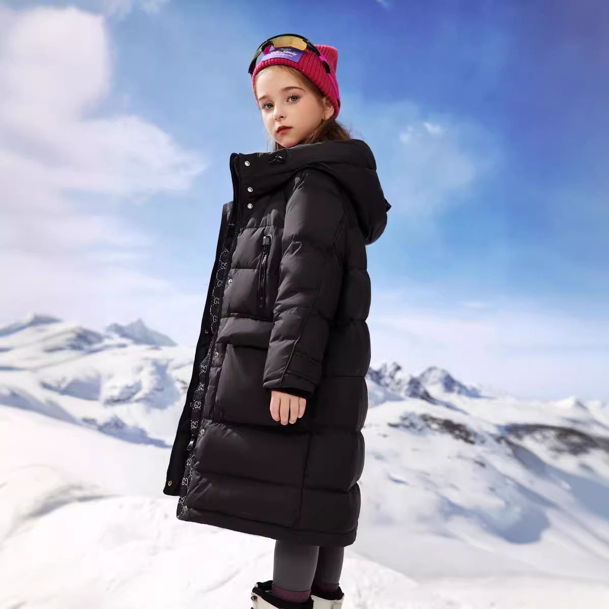 جاكيت KM3329 للفتيات جاكيت فضفاض داكن مبطن بالقطن، معطف شتوي أبيض مبطن بريش البط بالإضافة إلى طول طويل