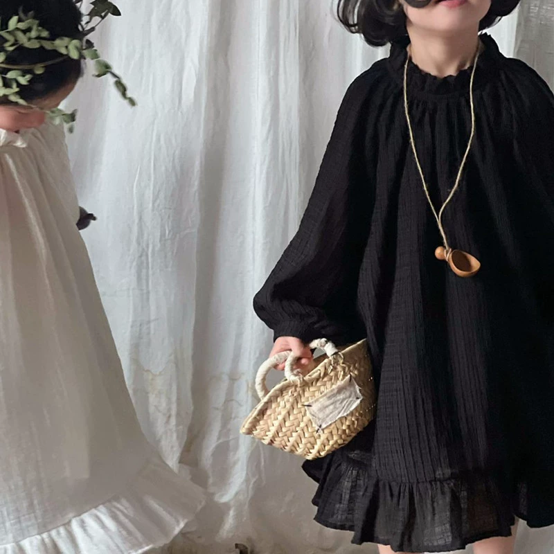 تنورة كورية للفتيات تنورة شيفون خرافية ربيع جديد للفتيات الصغيرات اللطيفة بلون سادة فستان الأميرة المكشكش