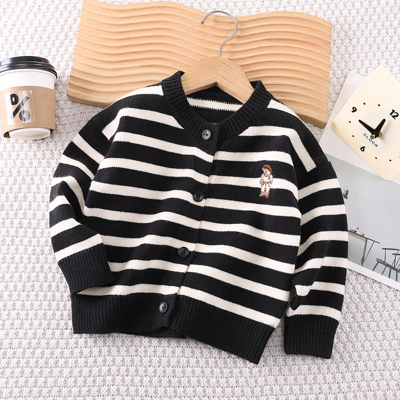 سترة صوفية مخططة واحدة لعام 2024 معطف خريفي للأطفال ملابس جديدة للأطفال من المصنع للبيع بالجملة