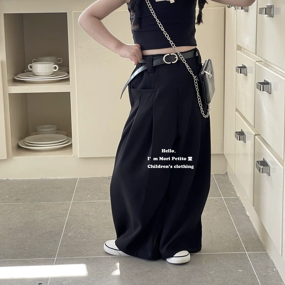 ألوان حلوة وباردة الفتيات الصيفية على الطراز الكوري بدلة سروال رفيعة الأطفال السراويل السراويل الساق على نطاق واسع الربيع والصيف بدلة الصيف