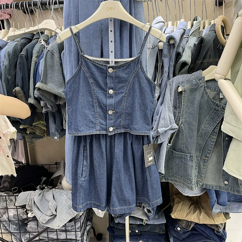 حمالة صدر بدون أكمام من قماش الدنيم الكاجوال على الطراز الغربي