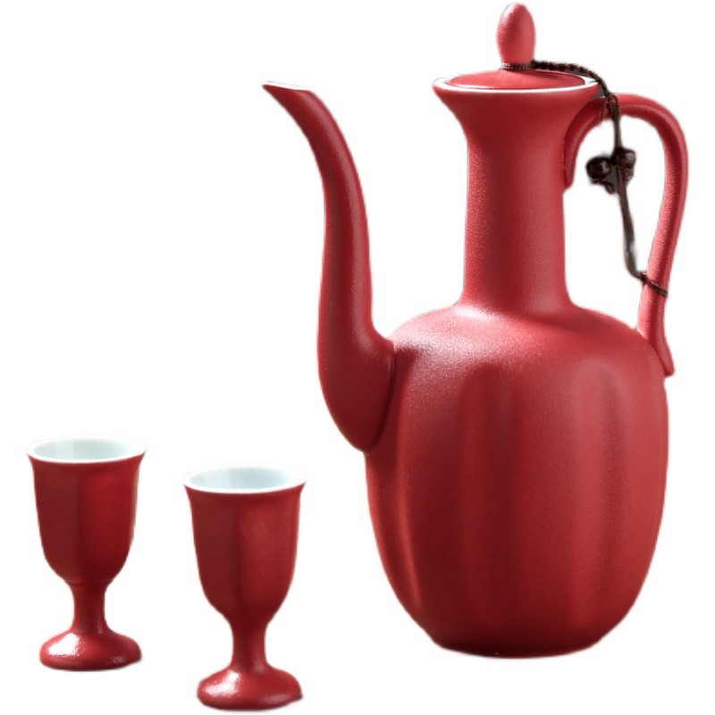 PK7J بالجملة وعاء النبيذ مأدبة الزفاف نخب كوب احتفالي النبيذ فاصل عقدة الزفاف عبر كوب أحمر طقم نبيذ السيراميك دعوى النمط الصيني