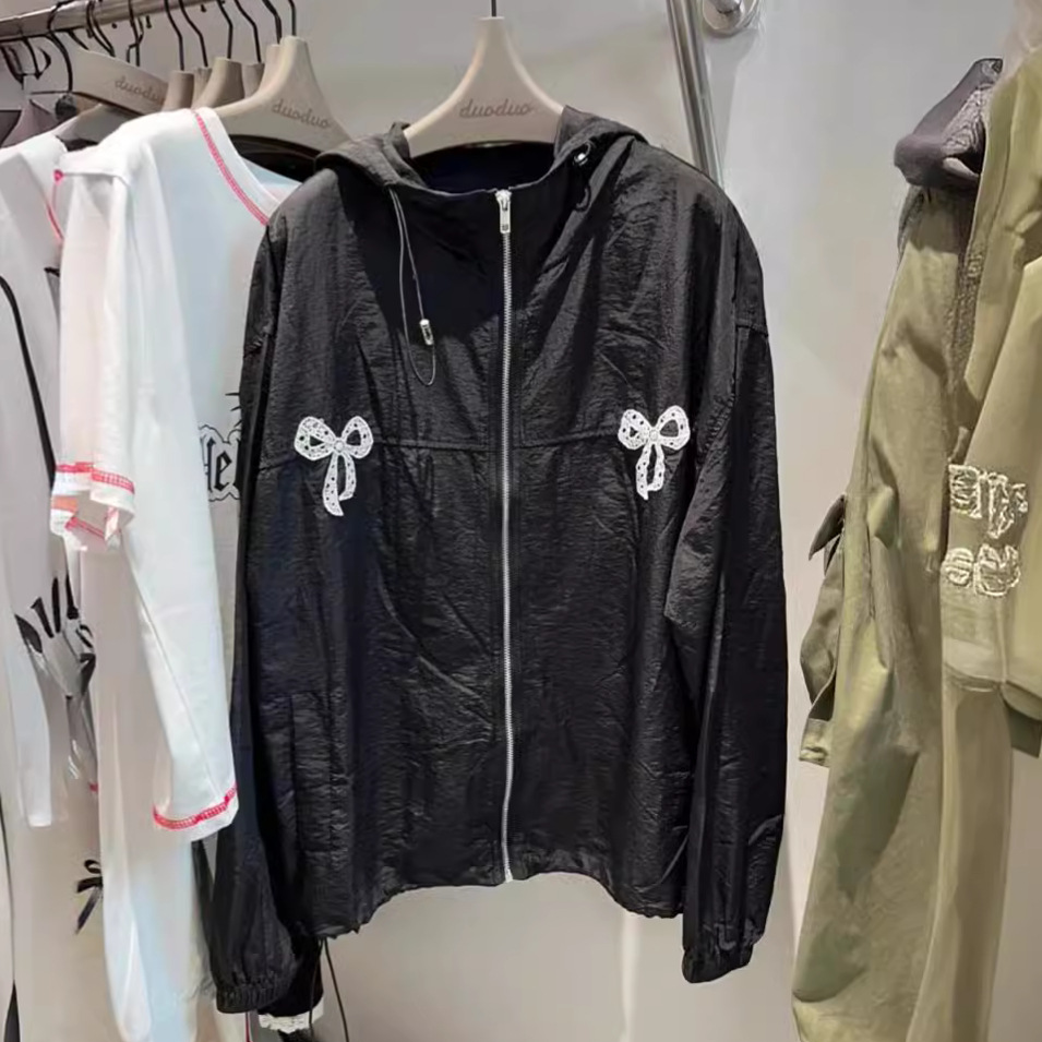 معطف DUODUO الجديد ذو القلنسوة الراقي للربيع والصيف برباط وسحاب فضفاض يناسب الجميع للنساء