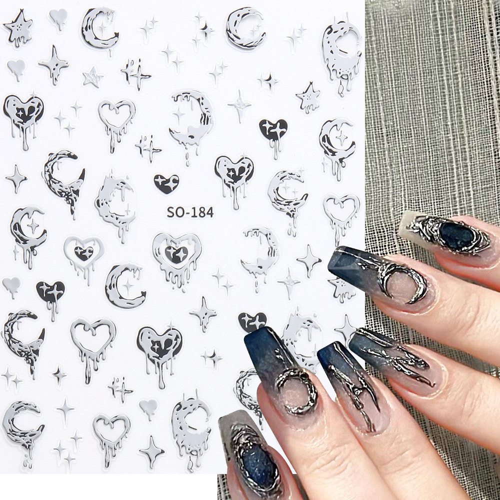 ملصق أظافر جديد لعام 2023 y2g سائل رائع للرياح بأربعة زوايا نجمة الحب والقمر مسمار لاصق ثلاثي الأبعاد