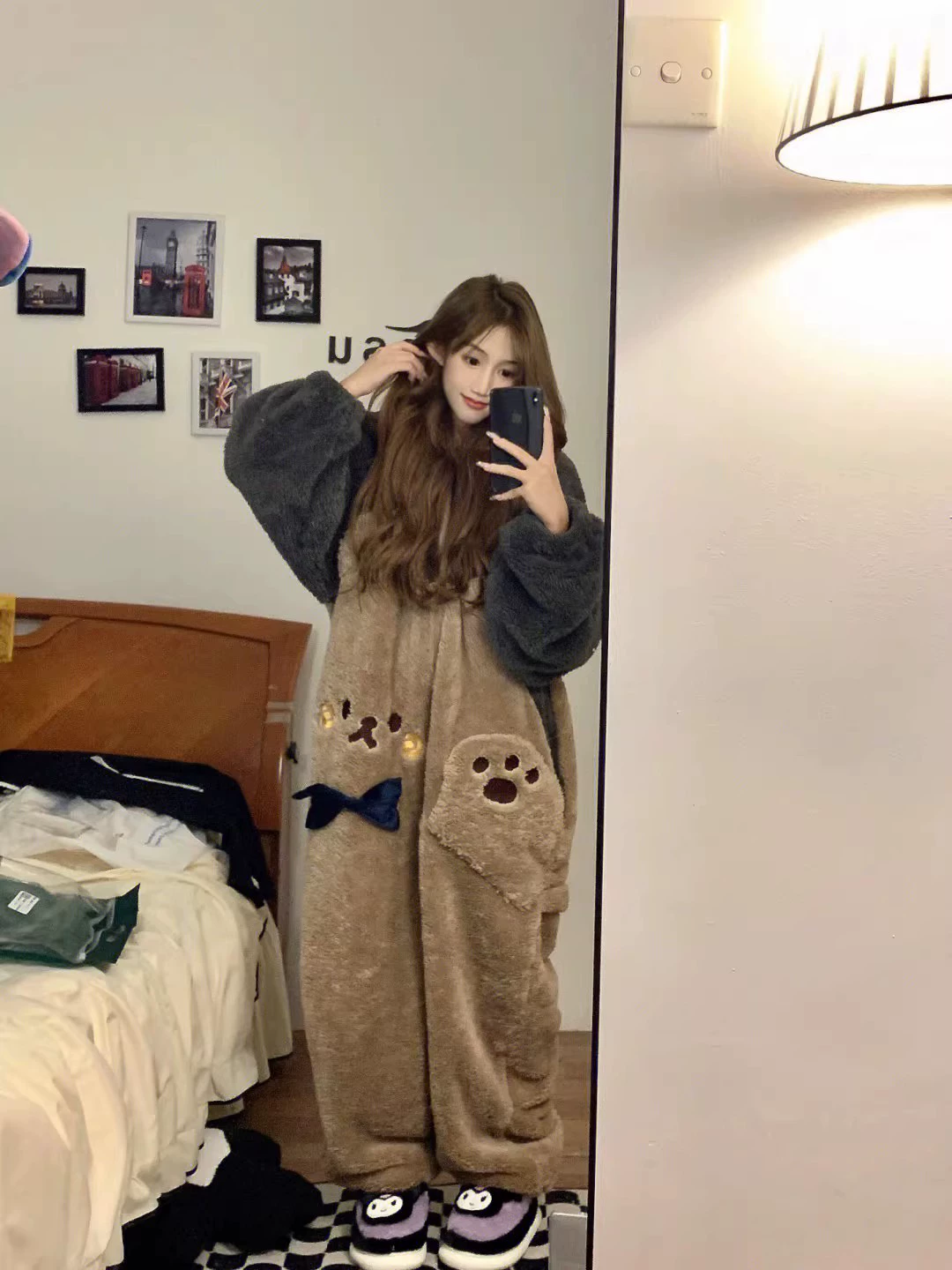 أنثى دب كورال مخمل سميك من قطعة واحدة