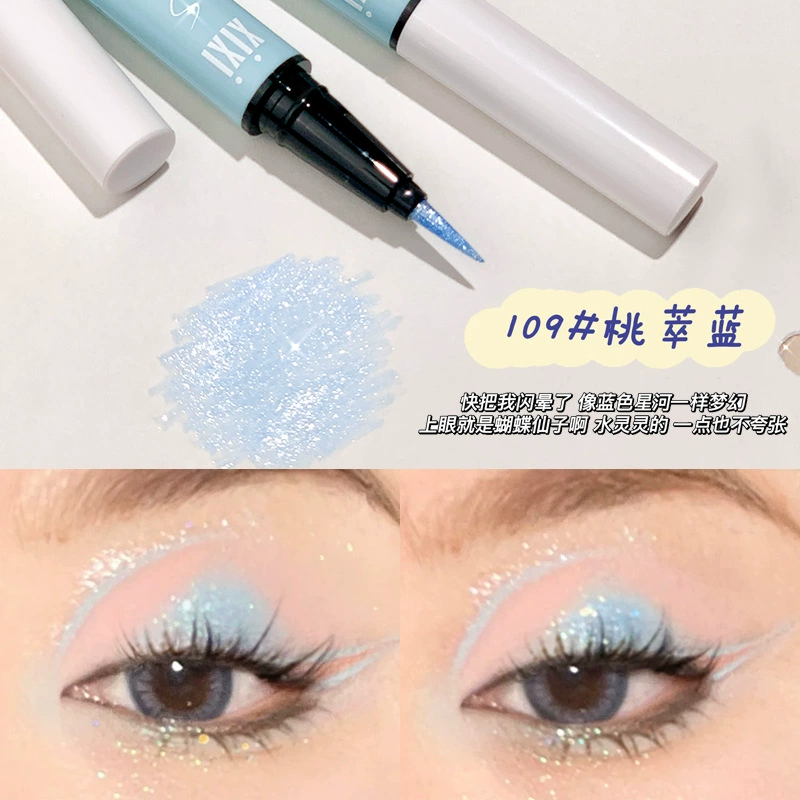 قلم تحديد العيون XIXI كريمي شفاف، قلم دودة القز الأزرق عالي الضوء وميض كحل ماسي، رغبة نقية تدوم طويلاً