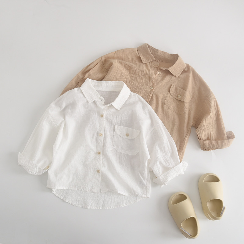 قميص للأطفال 2024 صيف جديد للأطفال معطف طفل طويل القطن كم قميص علوي الكورية نمط قميص للأطفال