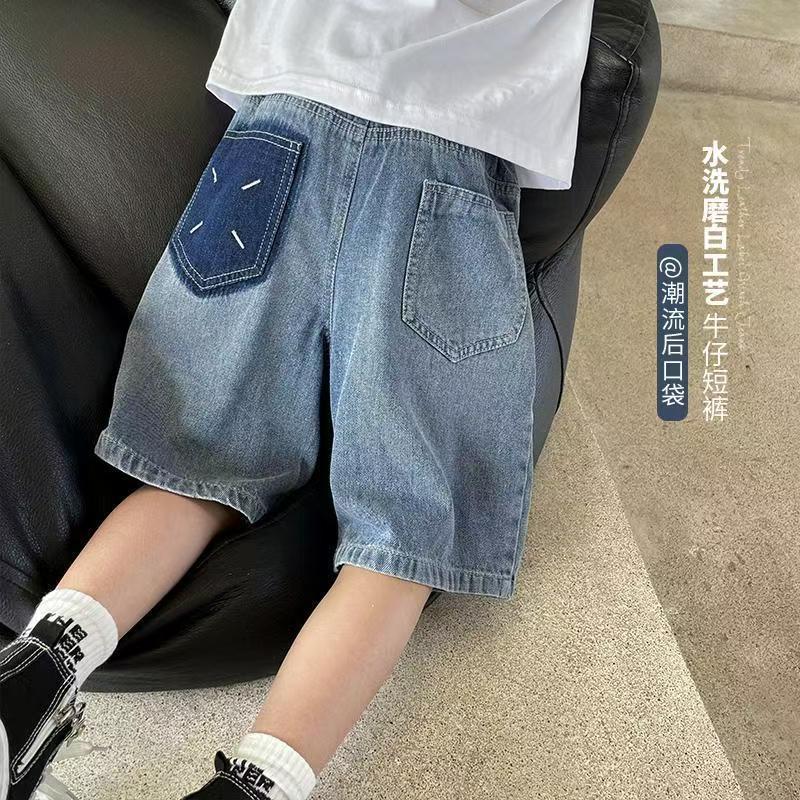 الأولاد الدنيم السراويل 2024 صيف جديد للأطفال خمس نقاط السراويل الكبيرة للأطفال النمط الغربي جينز غير رسمي النمط الكوري العصرية