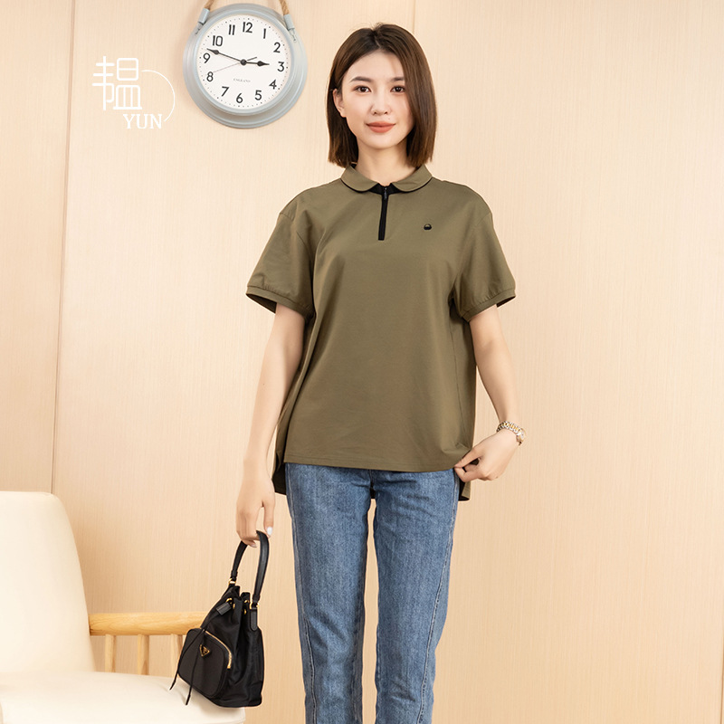 يون يون الصيف بلون زر التلبيب سليم صالح المرأة قصيرة الأكمام تي شيرت بسيط قميص بولو على الموضة
