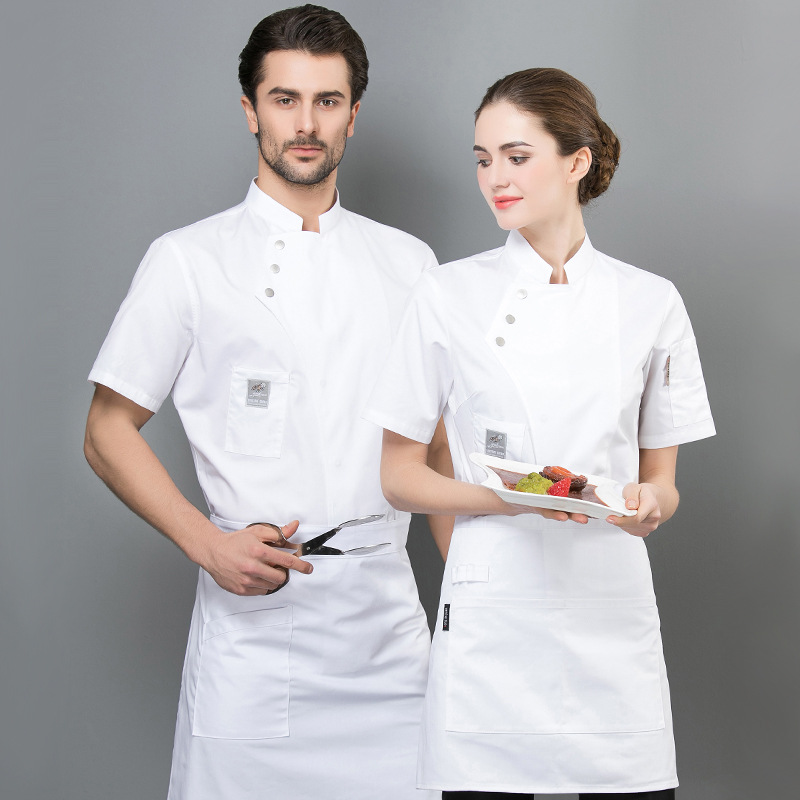 ملابس الشيف قصيرة الأكمام ملابس المطبخ الصيفية ملابس عمل المطاعم الغربية المطبخ الأبيض مقاس كبير ملابس عمل الشيف للرجال والنساء