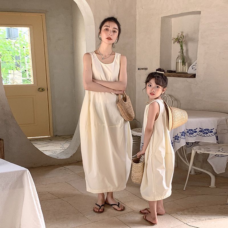 فستان موري تنورة برعم الزهور القطنية للوالدين والطفل صيفية بدون أكمام على الطراز الكوري تنورة صدرية للفتيات المشهورة