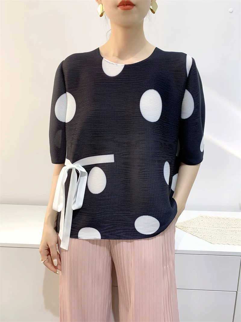 Miyake مطوية البولكا دوت سترة كارديجان متعددة الاستخدامات