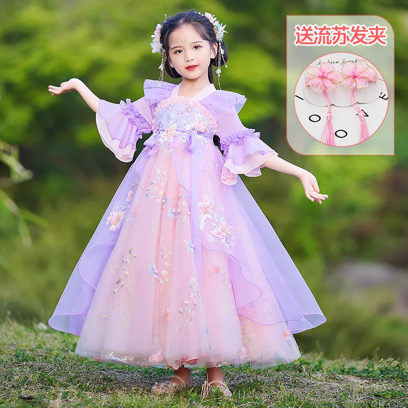 زي الفتاة الجنية الفائقة صيف هانفو زي الأسلوب القديم زي الأطفال 2025 جديد الصيف ربيع الخريف تنورة الأميرة على الطراز الصيني