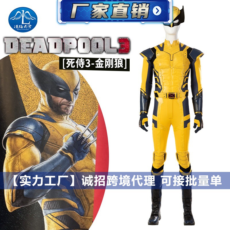 بدلة ديدبول وأفضل صديق ولفيرين التأثيرية بذلة كاملة لباس ضيق أصفر اللون لعم الذئب
