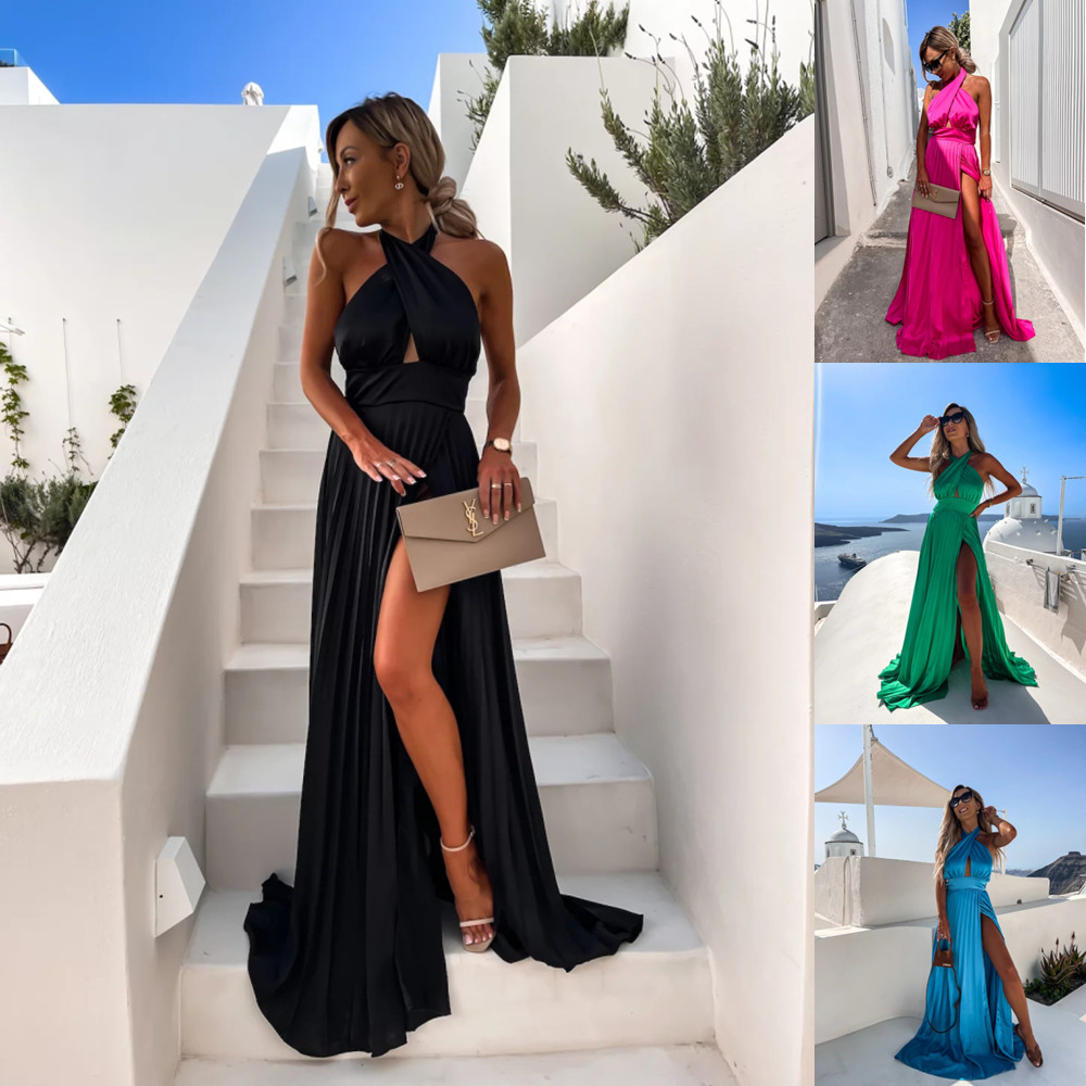 2022 محطة مستقلة أتمنى فستان أمازون انفجار صيفي بدون أكمام بحاشية متقاطعة وفتحة رقبة متقاطعة