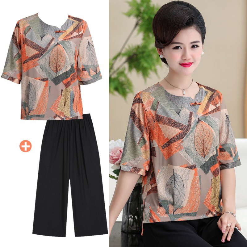 قطعة واحدة/بدلة فستان صيفي للأم تي شيرت بأكمام قصيرة وسراويل علوية من قطعتين في منتصف العمر قميص نسائي صيفي مقاس كبير
