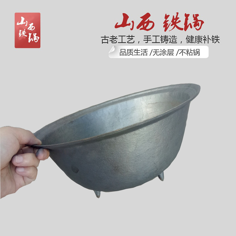 9ZRT الطراز القديم مصنوع يدويًا من الحديد الزهر وعاء عميق من الحديد الزهر وعاء المعكرونة المنزلي ووك 32 وعاء حديدي كبير ريفي وعاء الشواء
