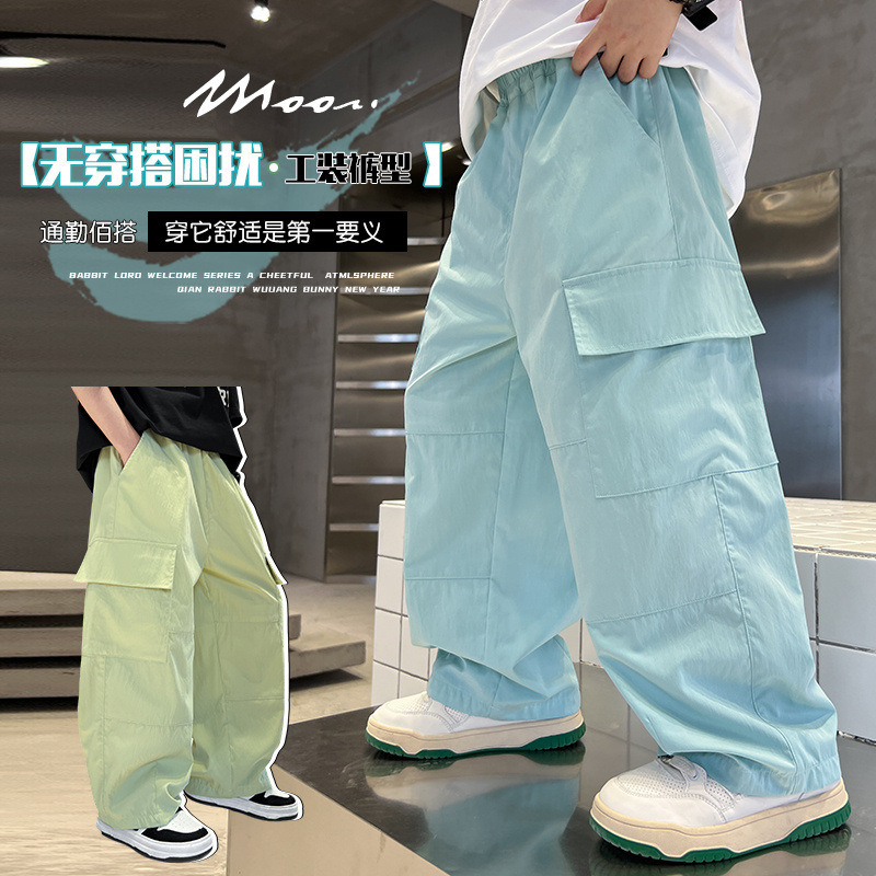 الصيف Zhongda بنين كرين السراويل الجديدة ملابس الأطفال الأطفال الأولاد رقيقة سراويل تقليدية فضفاضة الساق الشعر العصرية