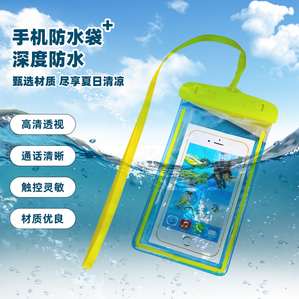 شفافة مضيئة الهاتف المحمول حقيبة مضادة للماء PVC شاشة تعمل باللمس المطر واقية كم واقية السباحة الانجراف الرقبة مختومة حقيبة