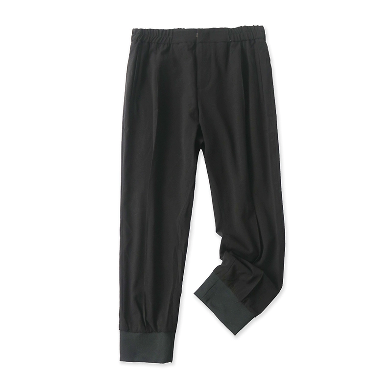 4242 سراويل أسود غير رسمية ، نصف فضفاضة ، خصر ضيق ، لون نقي ، خصم رفيع ، شعاع رفيع كامل تسع بنطال تجارة خارجية