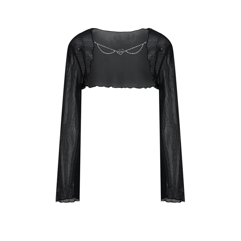 قميص أبيض بأكمام جرس مع شبكة مجوفة من الخارج للربيع والصيف