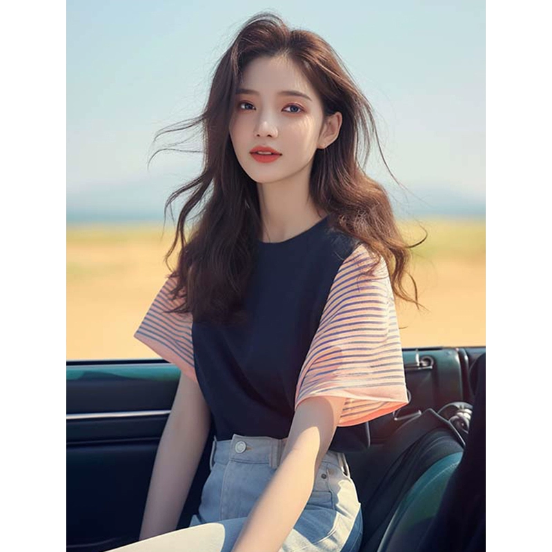 تقليص العمر الفريد والجمال ألوان متناقضة الكتف بأكمام قصيرة بأكمام قصيرة