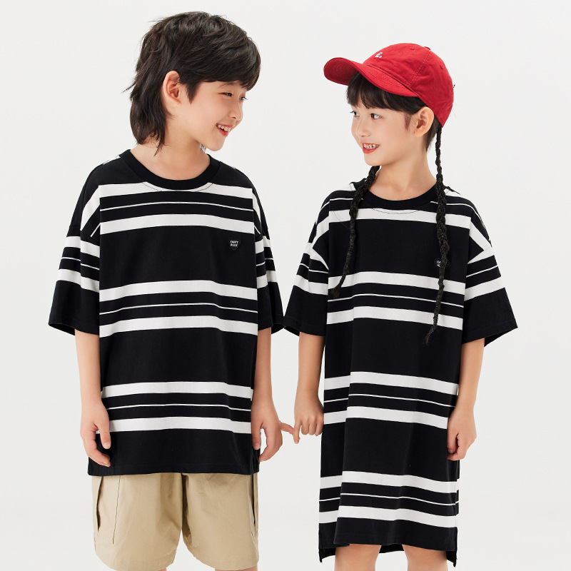 ملابس أطفال EK مقلية هيب هوب هيب هوب للأولاد فضفاضة مخططة بأكمام قصيرة تي شيرت كبير للأطفال فستان بناتي