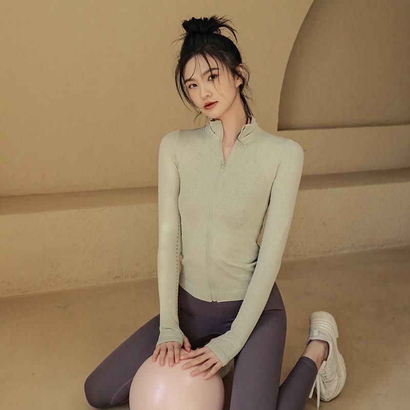 ملابس اليوغا للربيع والصيف، سترة رياضية جديدة للسيدات بأكمام طويلة وضيقة، وسحاب، وياقة للياقة البدنية