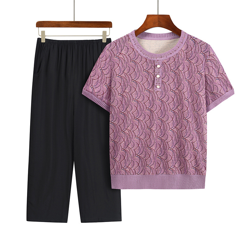 سترة صيفية للسيدات في منتصف العمر وكبار السن تبلغ من العمر 50 عامًا بأكمام قصيرة بلوزة جديدة 2023 بدلة فضفاضة غير رسمية للأم مكونة من قطعتين