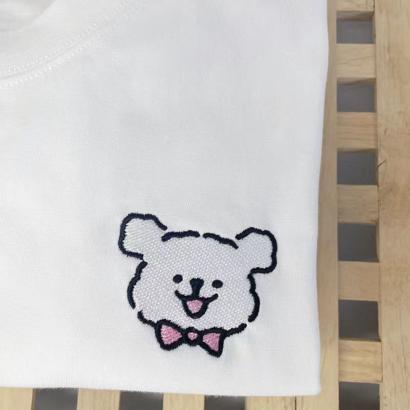 زوجين التطريز الأمريكية الأبيض جرو نمط 2024 صيف جديد القطن قصير الأكمام للجنسين تي شيرت العلامة التجارية العصرية