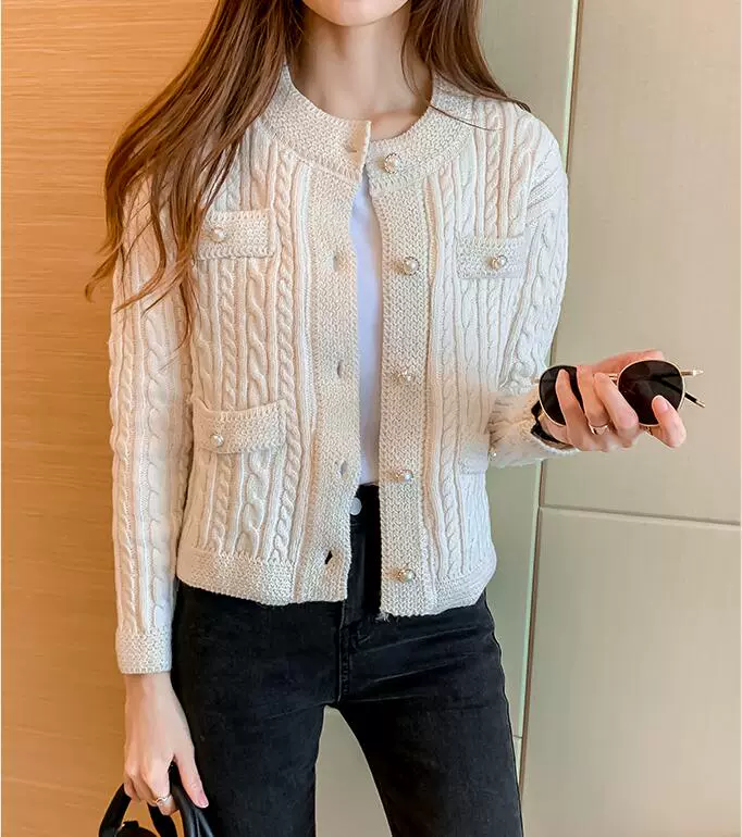 بذور اللؤلؤ معطف صغير من كارديجان سترة كبيرة الحجم