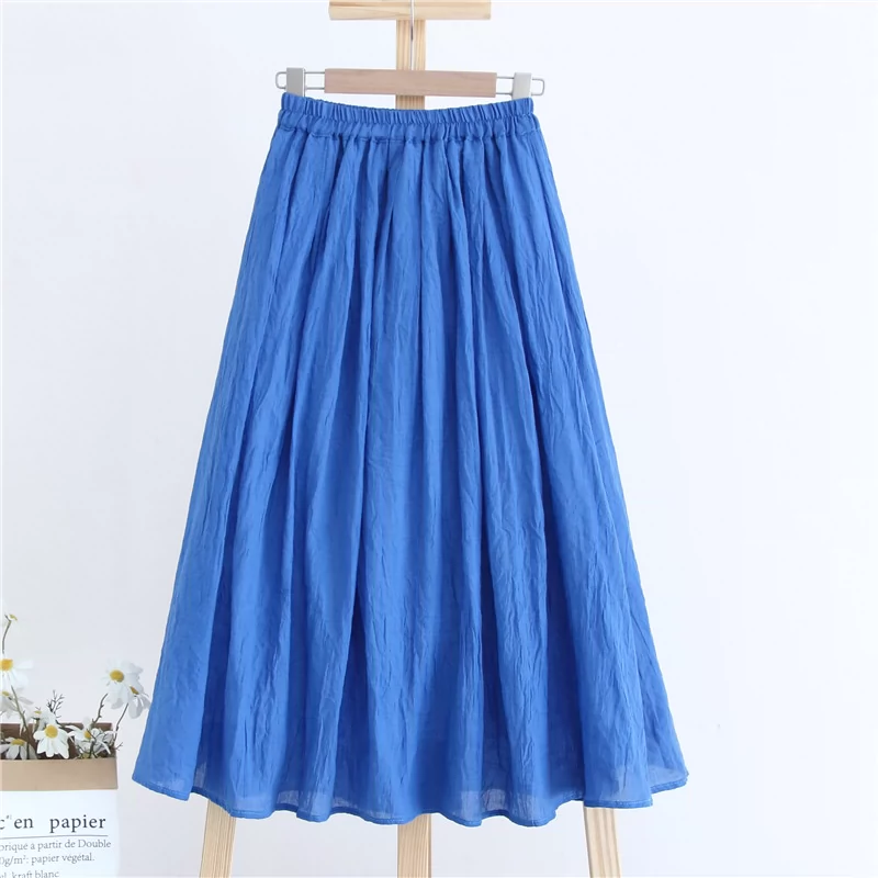 القطن اللطيف والكتان على الركبة المتدلية تتدفق التنورة غير الرسمية