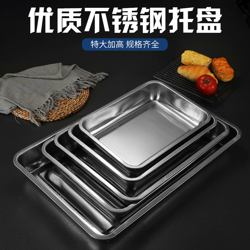 صينية من الفولاذ المقاوم للصدأ، لوحة مربعة مستطيلة، لوحة حديدية للشواء، طبق عشاء، حوض نباتي، طبق ضحل، مطبخ طعام تجاري، طبق كبير جدًا