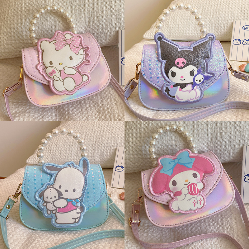 حقيبة هالو كيتي للأطفال حقيبة كتف محمولة للأميرة وحقيبة كتف صغيرة ومحفظة للعملات المعدنية للفتيات الصغيرات بفيونكة لطيفة
