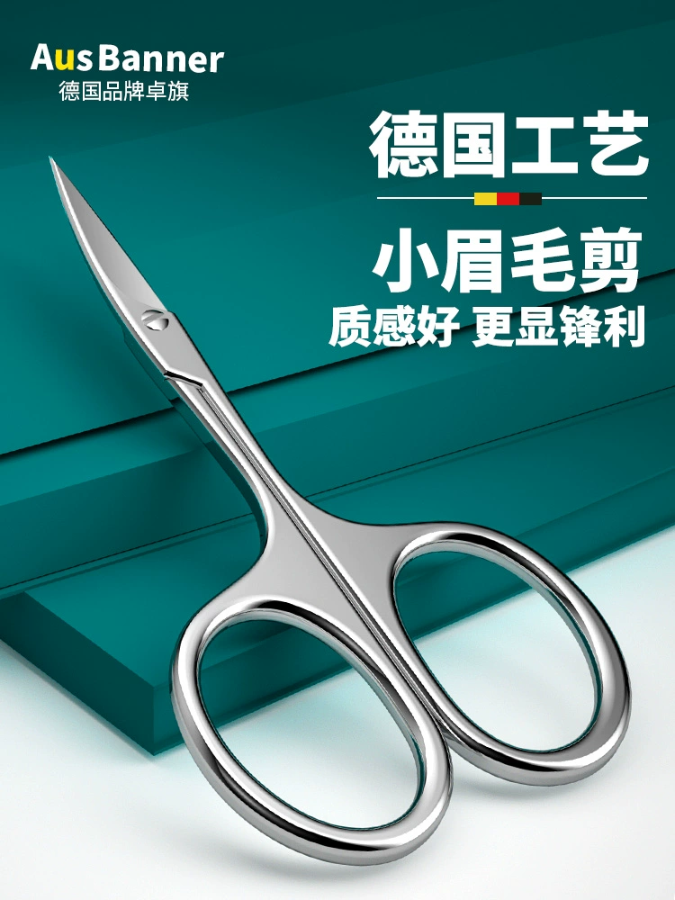 مقص ألماني لقص الحواجب، حواجب صغيرة، مقص تجميلي، رموش صناعية مدببة من الفولاذ المقاوم للصدأ، نهاية خاصة راقية