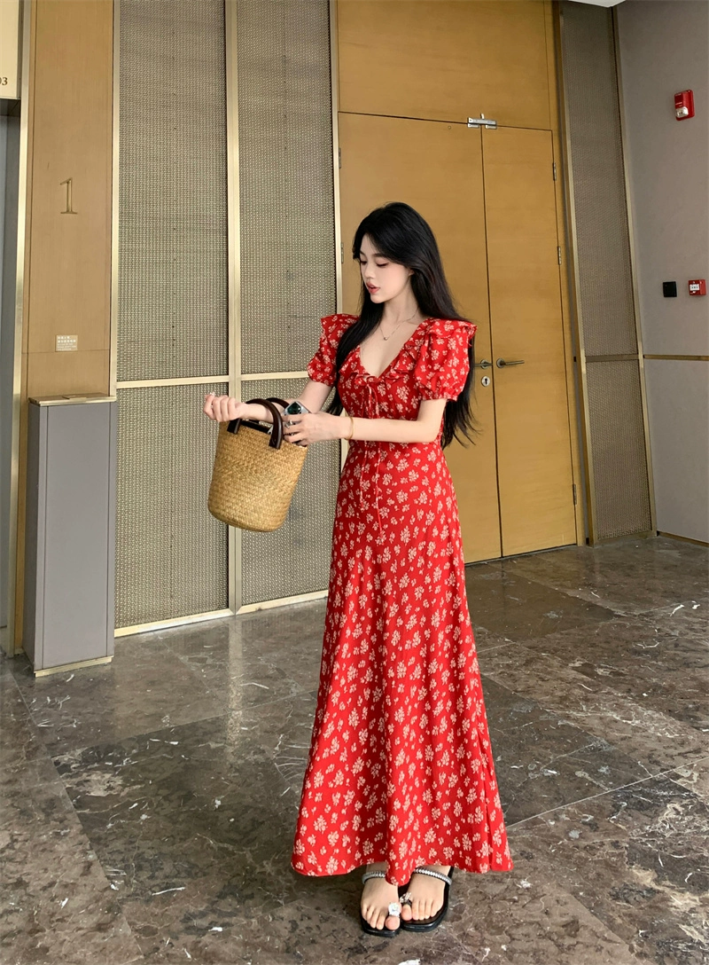 فستان نسائي مقاس كبير صيفي أحمر فرنسي مقاس MM