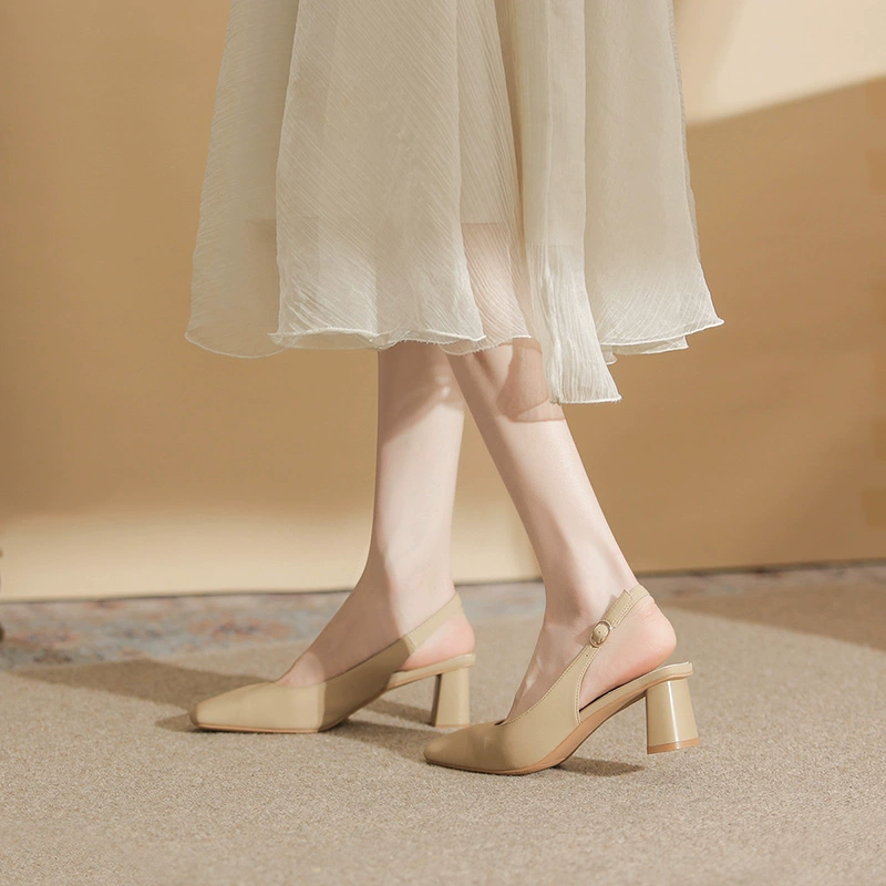 7CM مزاجه الأبيض والجلود الناعمة مرة أخرى الكعب العالي جوفاء