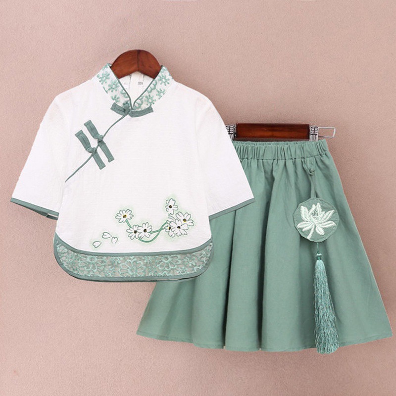 الفتيات فستان Hanfu 2024 جديد الصيف النمط الصيني قطعتين تانغ فستان بتصميم بدلة العتيقة للأطفال فستان شيونغسام