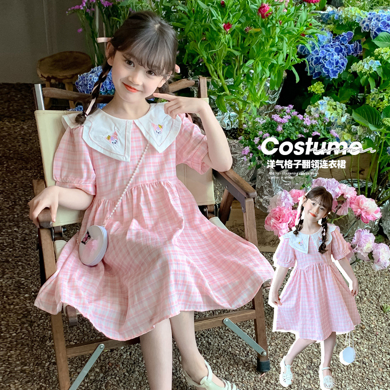 فستان بناتي صيف 2024 نمط جديد للفتيات على الإنترنت تنورة الأميرة الصيفية الشهيرة للأطفال بأكمام قصيرة
