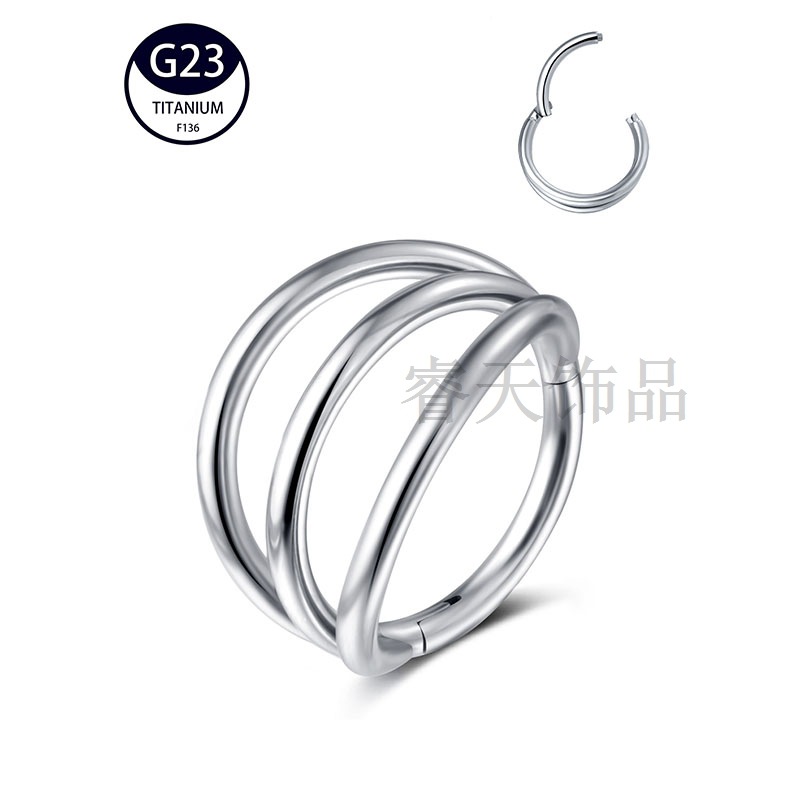 G23 التيتانيوم ثلاث حلقات الأنف الدائري اللسان مجوهرات أظافر F136 التيتانيوم الموضة الأوروبية والأمريكية جسم الإنسان ثقب الشفاه الدائري الثدي الدائري بالجملة