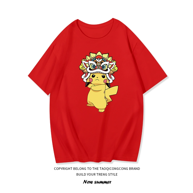 Pikachu Summer الصيفية على الطراز الصيني قصير t -sleeved t -shirt الوالد -تثبيت child