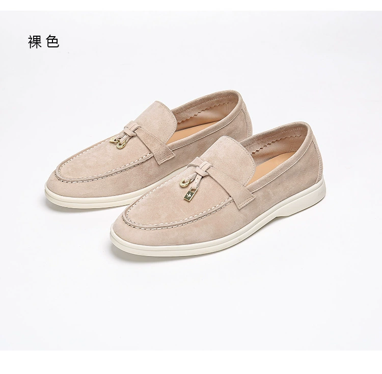حذاء Lo’r*p أصلي فاخر وخفيف الوزن وخفيف الوزن من جلد الغنم بمقدمة مستديرة ونعل ناعم للاستخدام اليومي في الفصول الأربعة