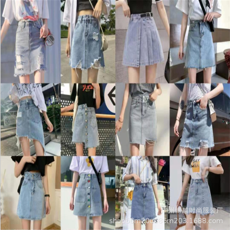 تنورة الدنيم الصيفية أزياء التجارة الخارجية الساخنة غير النظامية فضفاضة الورك الدنيم بالإضافة إلى حجم تنورة توريد المصنع