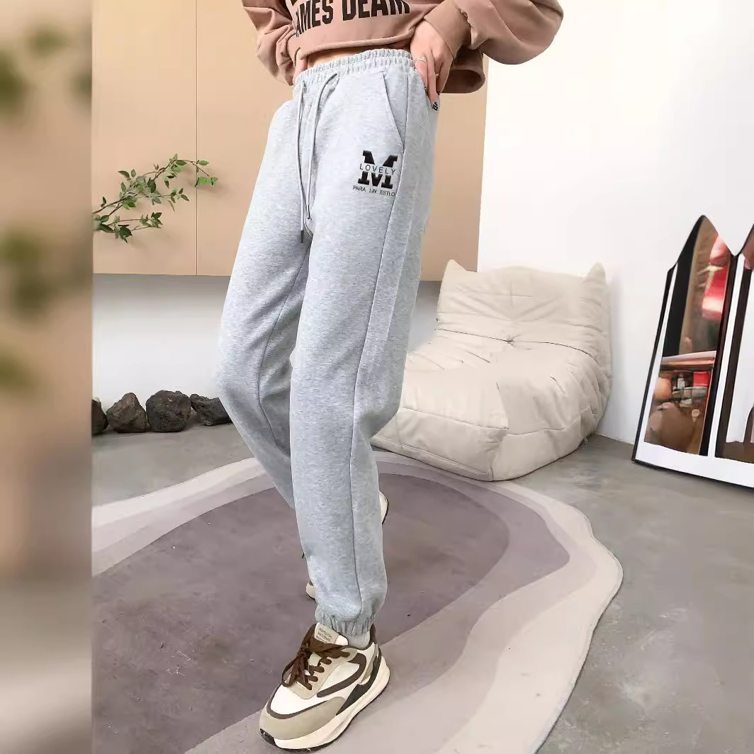 حجم الجري الرخيص، بنطال رياضي من القطن الصيني المركب والحرير والحليب، بشعار عصري، رياضي غير رسمي فضفاض ومريح مربوط بالكاحل للنساء