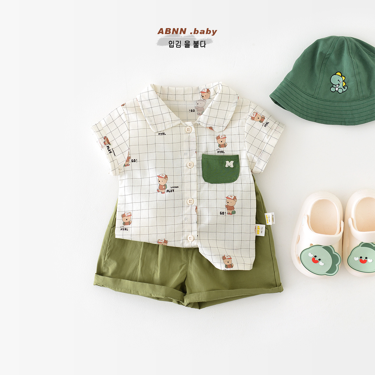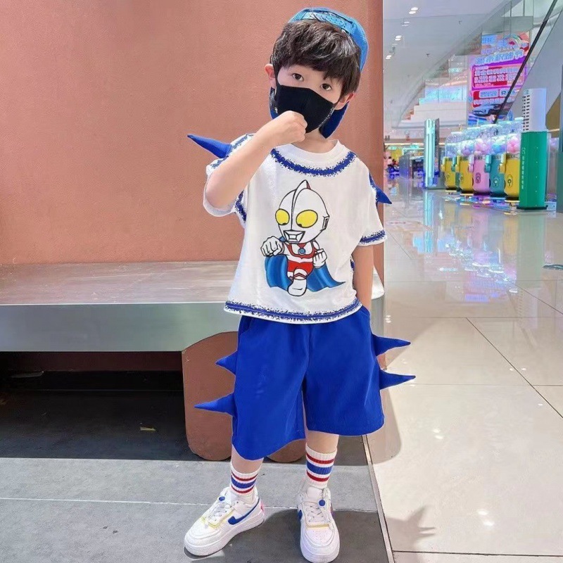 بدلة انفجارات ألتمان الخفيفة للأولاد من SN بدلة صيفية جديدة كرتونية بأكمام قصيرة على الطراز الكوري مكونة من قطعتين وسيم عصري