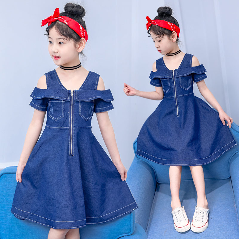 تنورة أطفال من الدنيم للفتيات 2022 ملابس أطفال صيفية نمط جديد للأطفال فستان من قماش الدنيم عصري
