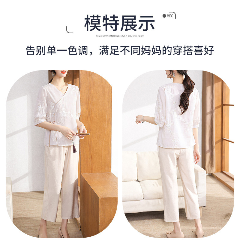 فستان صيفي للأم الشابة بأكمام قصيرة من القطن والكتان 2024 قميص نسائي صغير لتقليل العمر في منتصف العمر وكبار السن تي شيرت نسائي على الطراز الغربي
