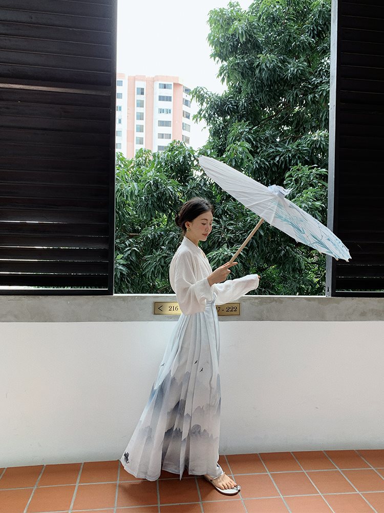 تحسين ضوء العمل هانفو الربيع والصيف تانغ تشيوكو تنورة سوبر خرافية أنيقة الطراز القديم عنصر هان تنورة الصدر