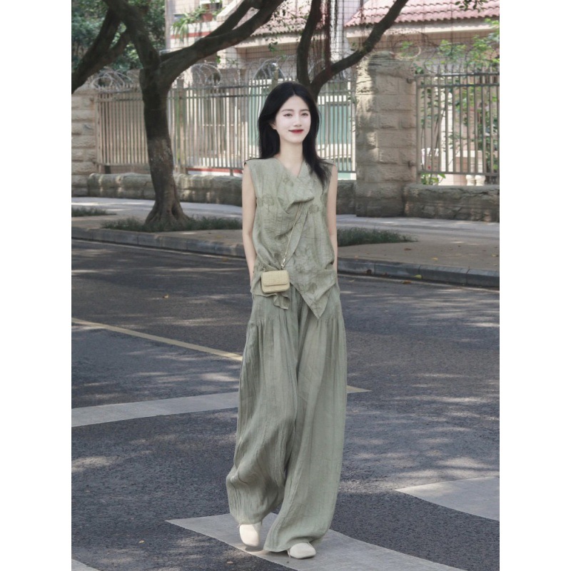 الدراما الكورية ملابس نسائية عادية بدلة التخسيس وتغطية اللحوم أنيقة أنيقة للمرأة 2024 صيف قطعتين صغيرة طازجة